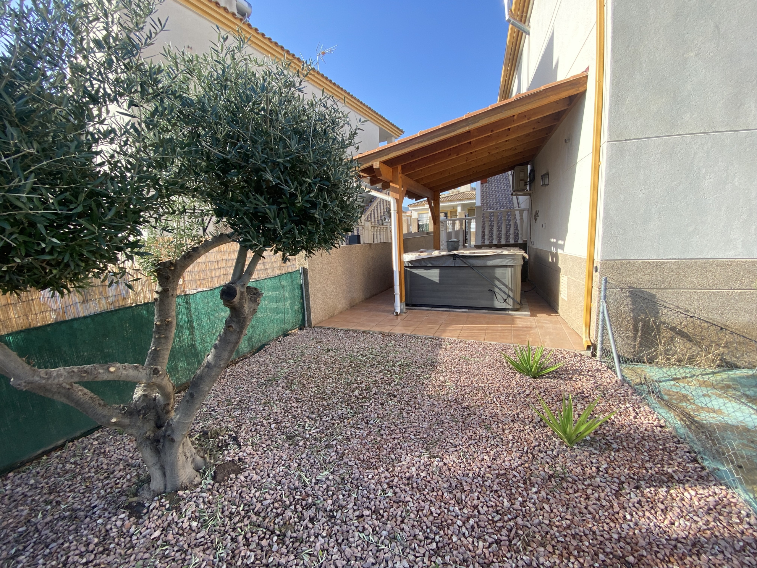 En el exterior, disfruta de tu jardín privado con jacuzzi, ideal para relajarte y tomar el sol. La propiedad también cuenta con una terraza en la azotea, donde podrás disfrutar de las impresionantes vistas panorámicas de los alrededores.